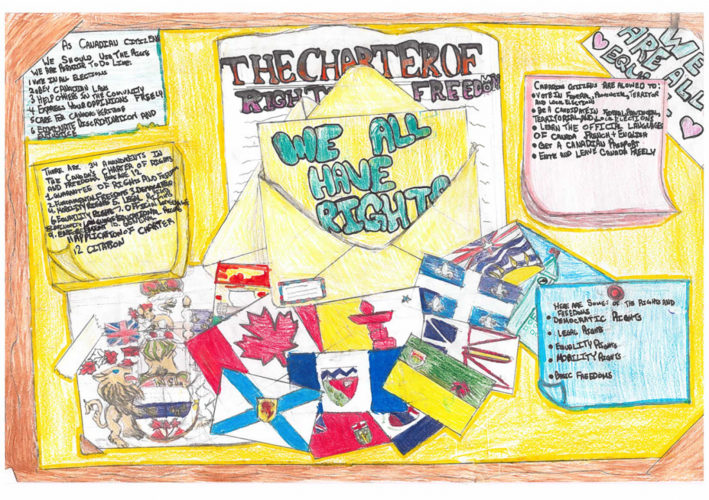 Every year, grade 5 students from around the province take part in OJEN’s Poster Challenge Program! Working with their teachers and with OJEN materials to learn about the Canadian Charter of Rights and Freedoms, the students choose the Charter right that means the most to them and design beautiful posters that represent why that right matters for everyone in Canada!