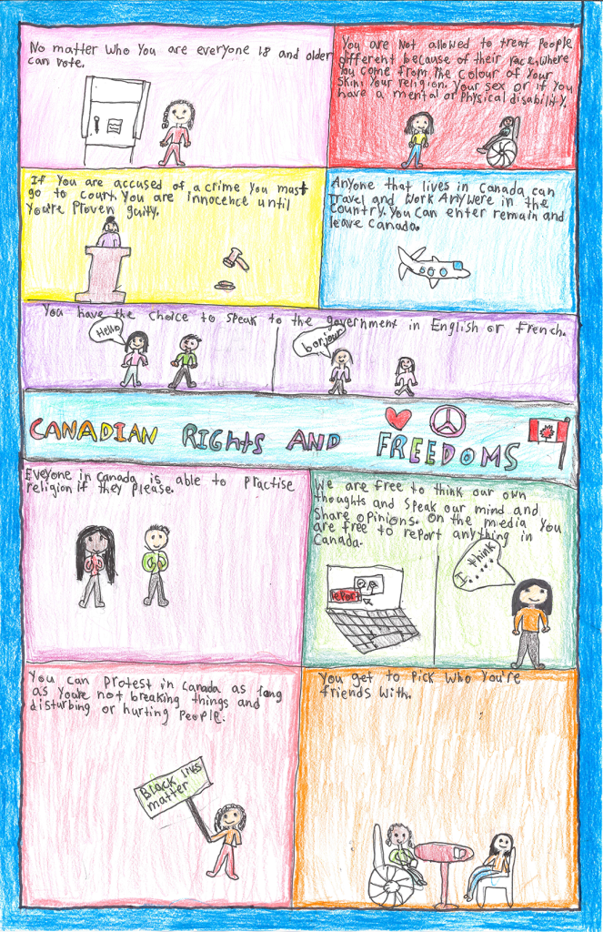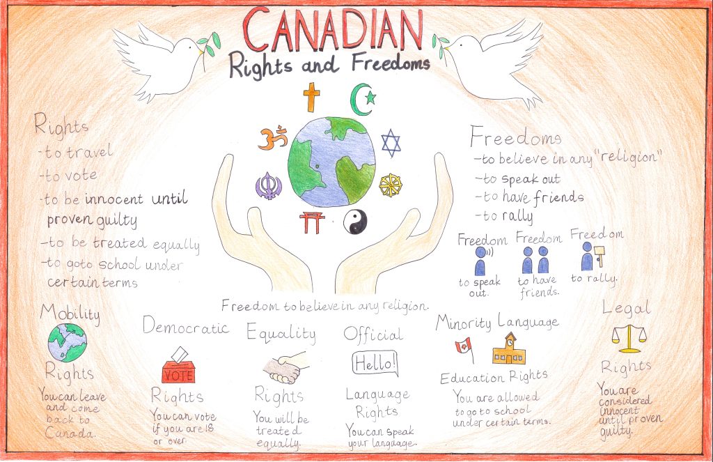 Every year, grade 5 students from around the province take part in OJEN’s Poster Challenge Program. Working with their teachers and with OJEN materials to learn about the Canadian Charter of Rights and Freedoms, the students choose the Charter right that means the most to them and design beautiful posters that represent why that right matters for everyone in Canada!