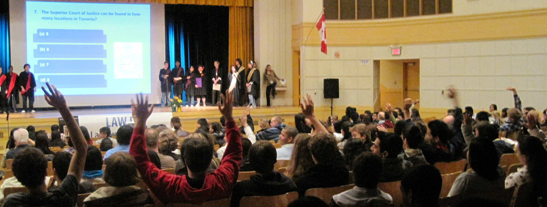 Law Symposiums are a unique opportunity for students from multiple high schools to come together and learn about law directly from people who are immersed in the thick of it. If your school is in a city that contains a law school or a paralegal college – including Ottawa, Kingston, Thunder Bay, London, Windsor, and Toronto – please contact us to inquire about Law Symposiums in your area. If your school is interested in hosting a Law Symposium for students from other schools in your community, let us know; we may be able to enlist the help and support of a local OJEN Committee. Contact Bryn at brieger@ojen.ca to learn more.